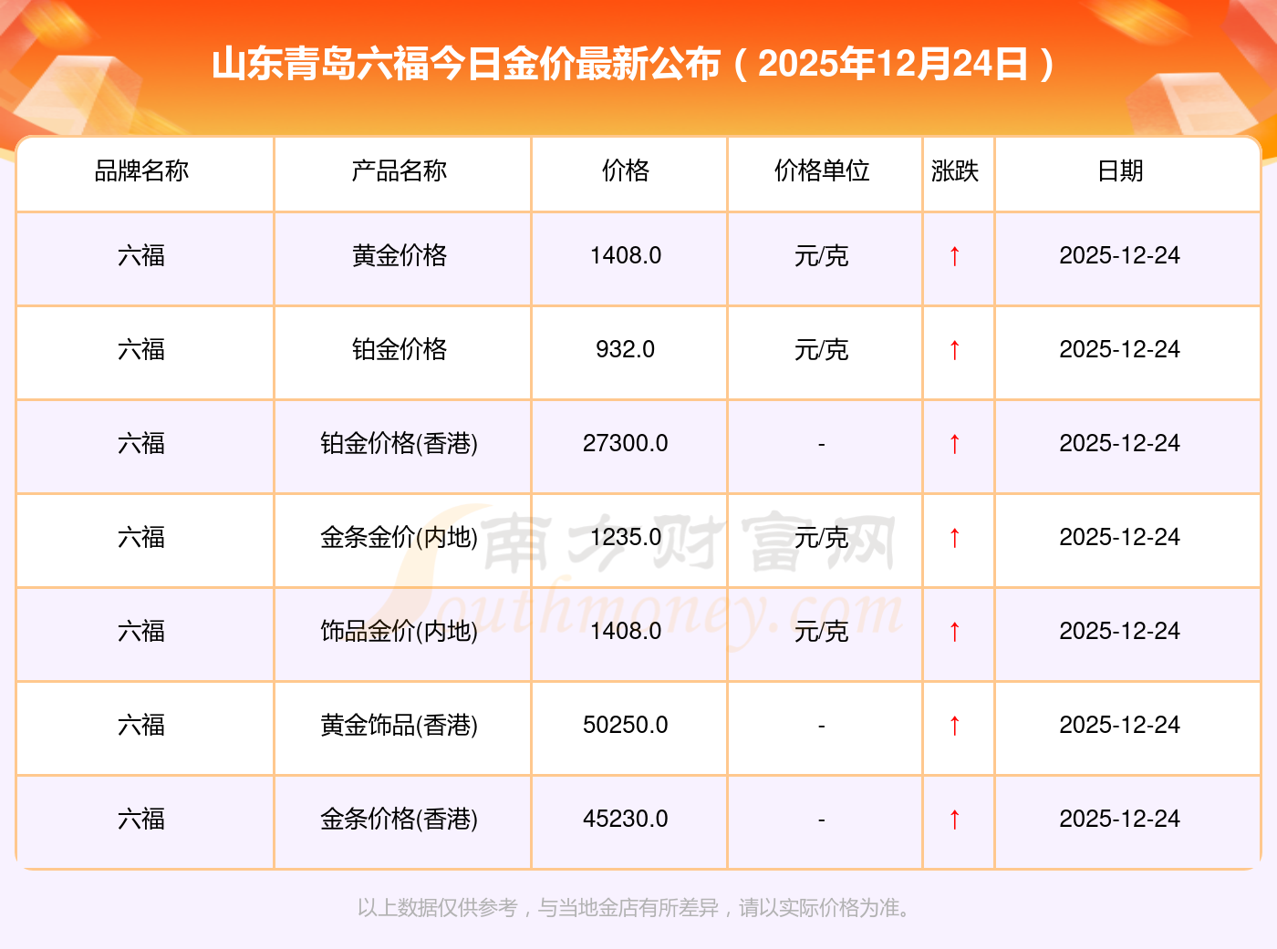 以上數(shù)據(jù)僅供參考,與當(dāng)?shù)仄放粕獭⒔鸬、企業(yè)及銀行營(yíng)業(yè)廳報(bào)價(jià)有所差異,依產(chǎn)品不同需另附工費(fèi),請(qǐng)以實(shí)際報(bào)價(jià)為準(zhǔn)。本站對(duì)價(jià)格等不作任何保證或承諾,請(qǐng)自行核實(shí)相關(guān)內(nèi)容,因此所引起的后果與本站無(wú)關(guān)。