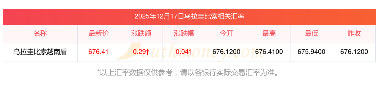烏拉圭比索對越南盾匯率調(diào)整新消息2025-12-17