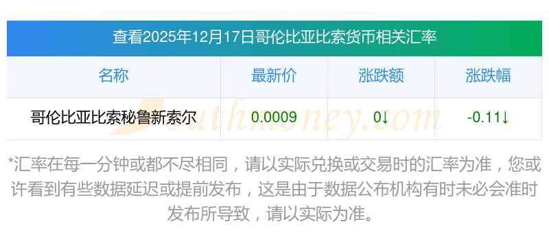 每日哥倫比亞比索兌秘魯新索爾匯率調(diào)整查詢2025/12/17