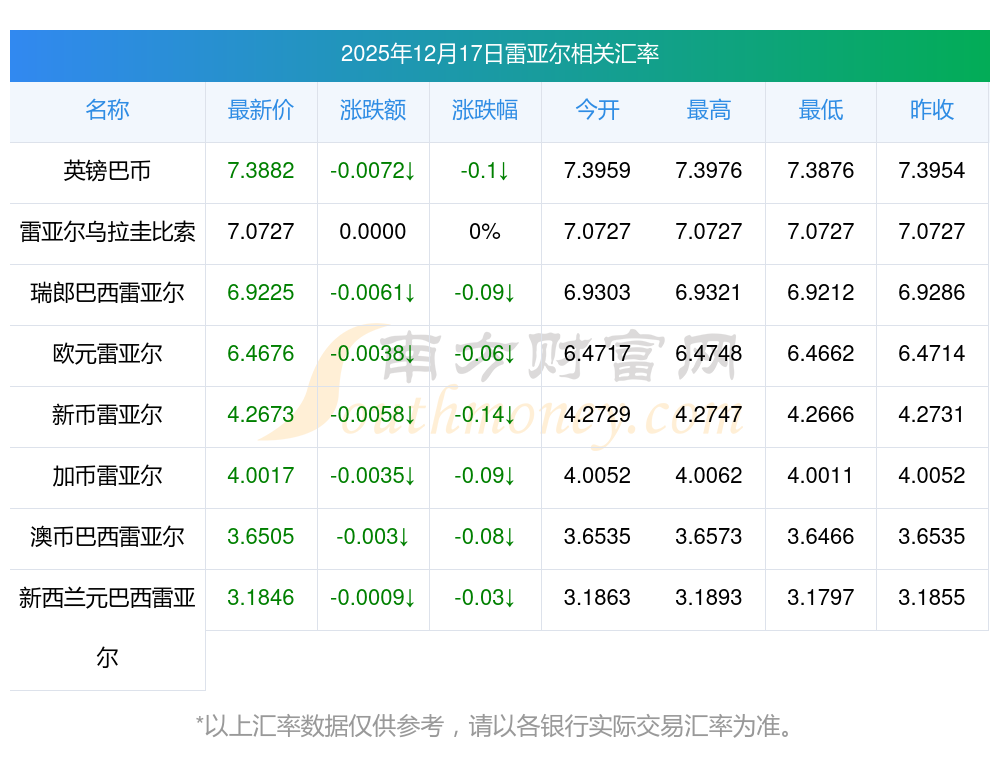 不同貨幣兌換比率 今天雷亞爾兌港幣新匯率價多少?(2025年12月17日)