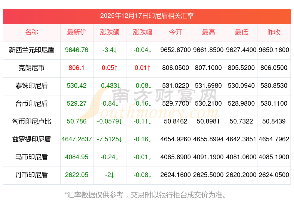 2025年12月17日印尼盾相關(guān)匯率查詢