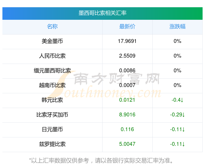 2025年12月17日墨西哥比索相關(guān)匯率查詢