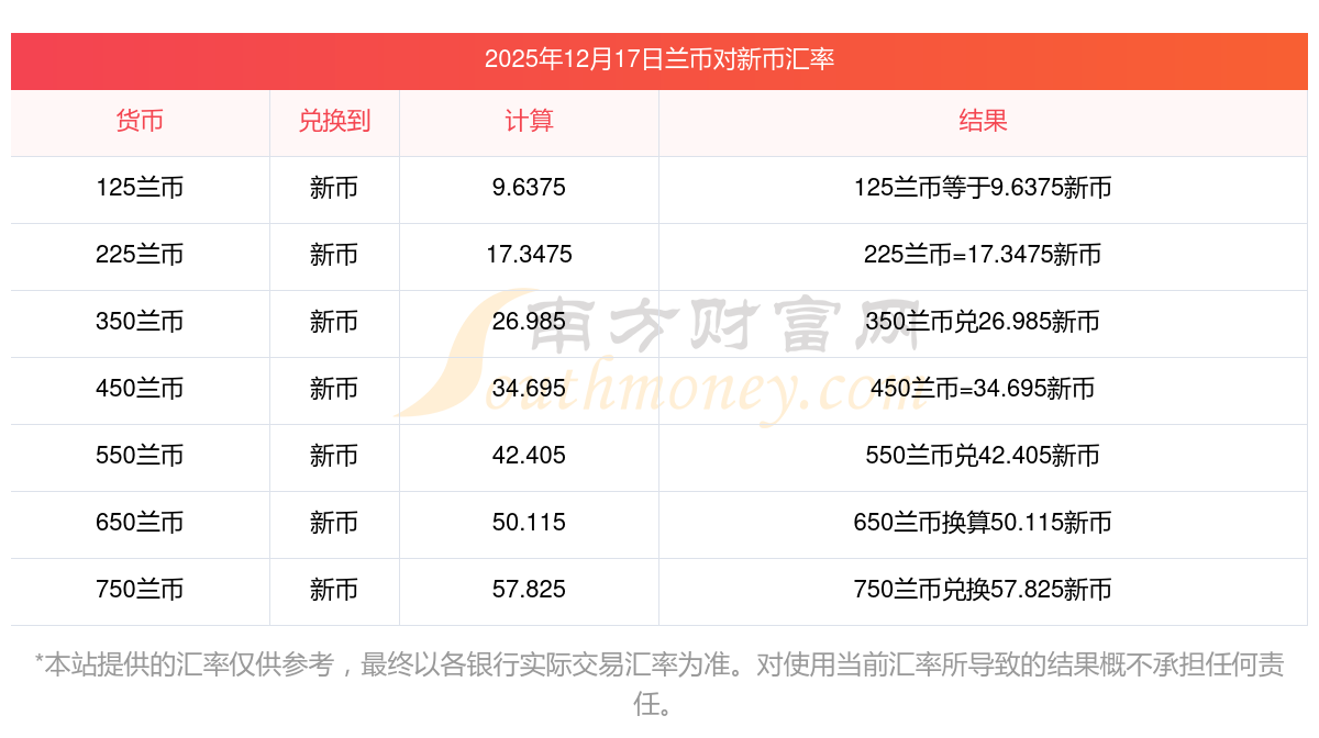 今日實時匯率_蘭幣換成新幣匯率查詢2025-12-17