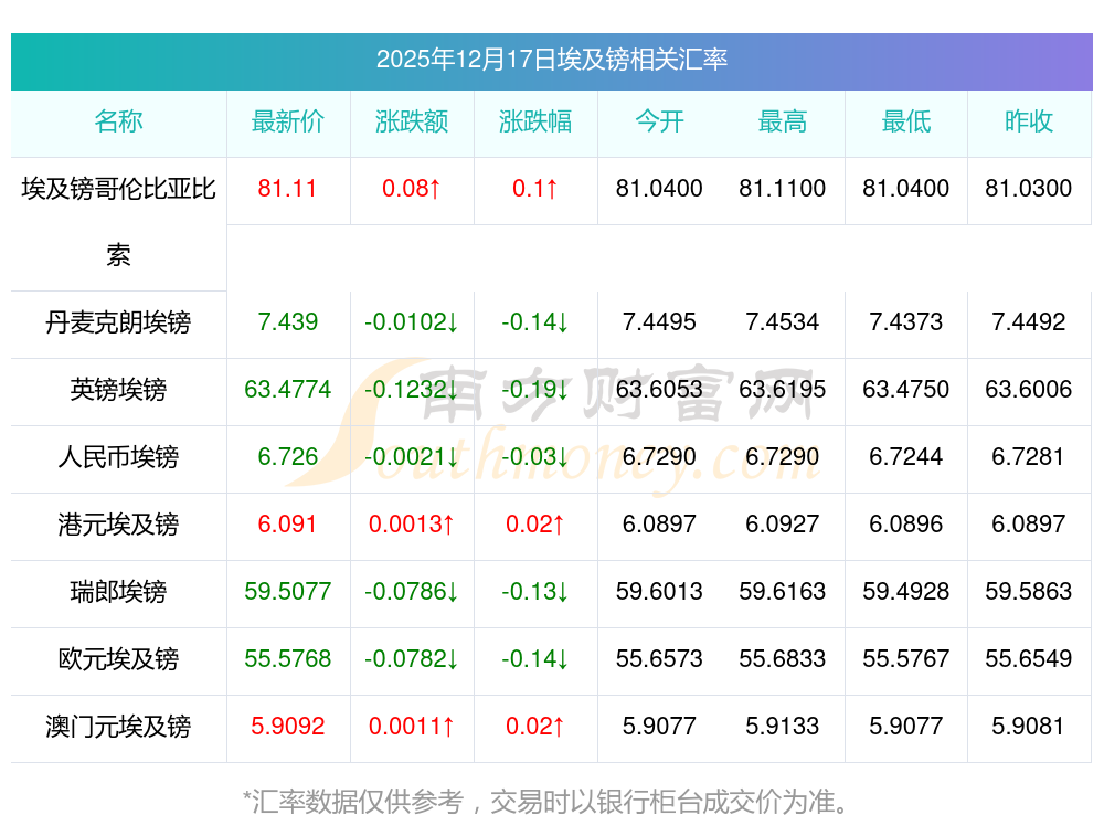 2025年12月17日埃及鎊相關(guān)匯率查詢