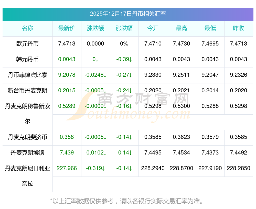 根據(jù)2025年12月17日匯率,丹幣兌換南非蘭特匯率最新價(jià)2.632800,今開價(jià)2.6345,昨收價(jià)2.6345,最高價(jià)2.6400,最低價(jià)2.6301。