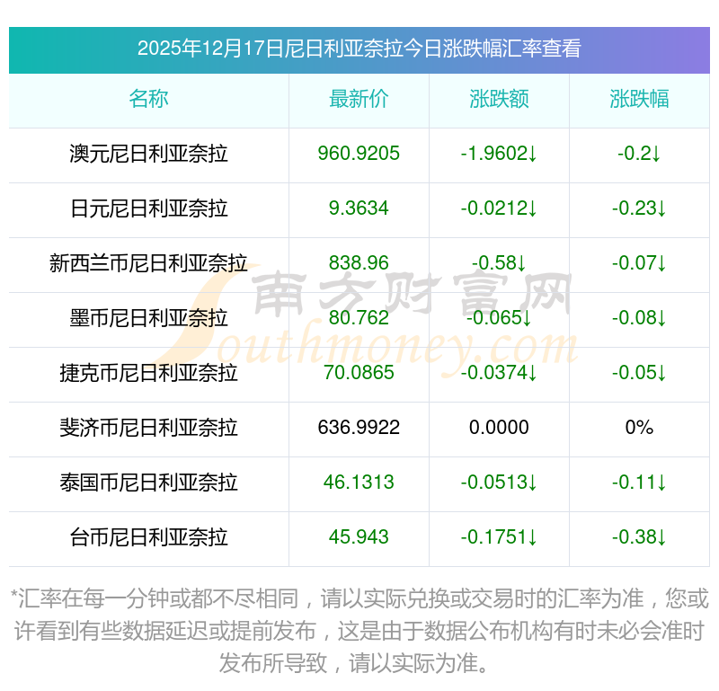 換匯指南_尼日利亞奈拉與澳幣實(shí)時(shí)兌換匯率多少(12-17)