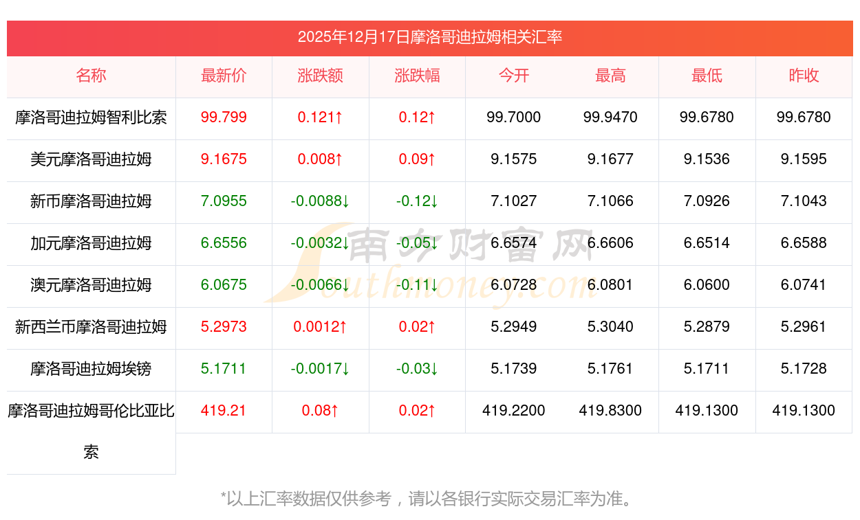 2025年12月17日摩洛哥迪拉姆相關匯率查詢