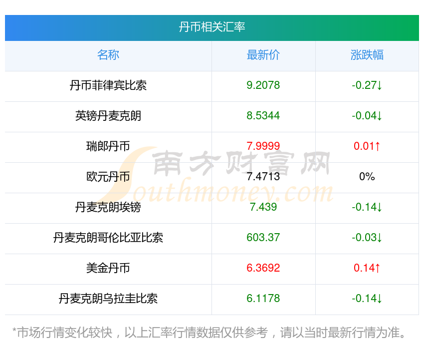 南方財富網(wǎng)為您提供丹幣對尼日利亞奈拉匯率最新價格詳情。