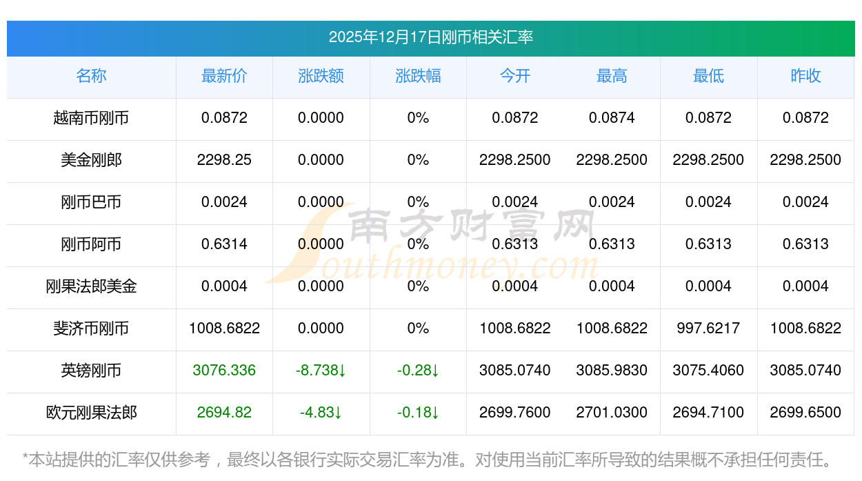 2025年12月17日剛幣相關(guān)匯率查詢