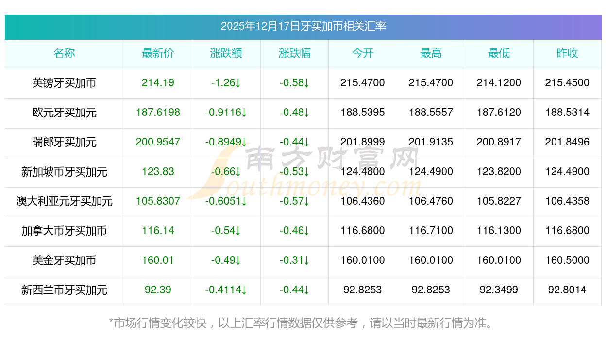 匯率數(shù)據(jù)僅供參考,交易時(shí)以銀行柜臺(tái)成交價(jià)為準(zhǔn)。