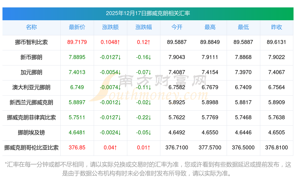 2025年12月17日挪威克朗相關(guān)匯率查詢