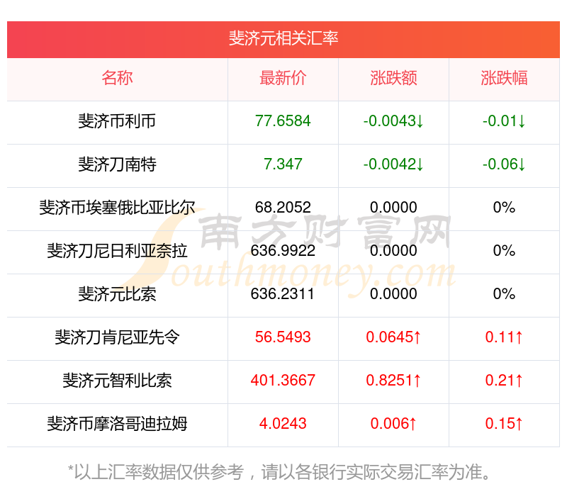 2025年12月17日最新消息,斐濟元兌換泰國幣最新匯率為13.803900,今開為13.7885,昨收為13.7929,最高為13.8213,最低為13.6407。