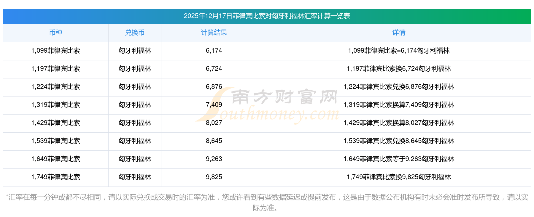 今天57菲律賓比索兌換匈牙利福林的折算匯率是多少_外匯查詢12-17
