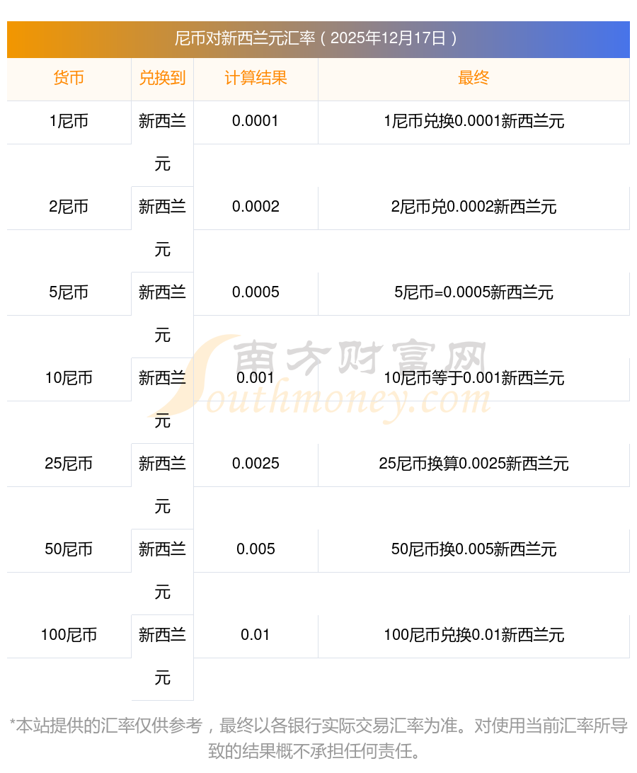 南方財富網(wǎng)為您提供尼幣對新西蘭元匯率最新價格詳情。