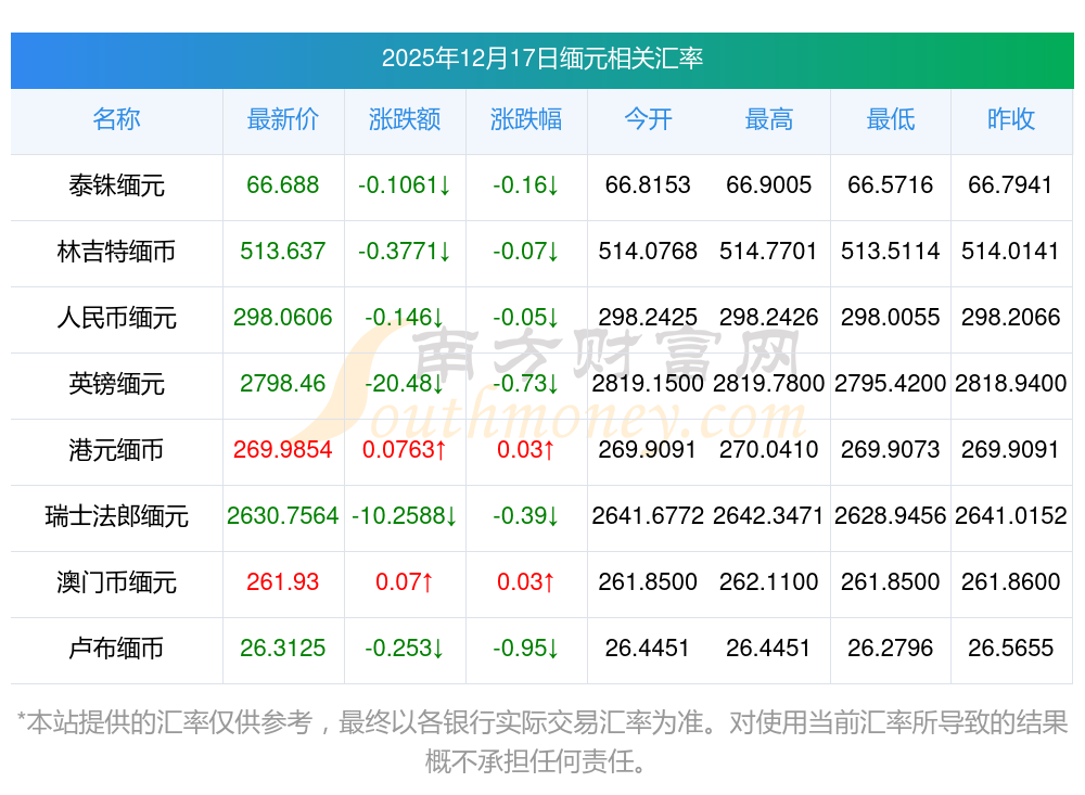 匯率數(shù)據(jù)僅供參考,交易時(shí)以銀行柜臺(tái)成交價(jià)為準(zhǔn)。