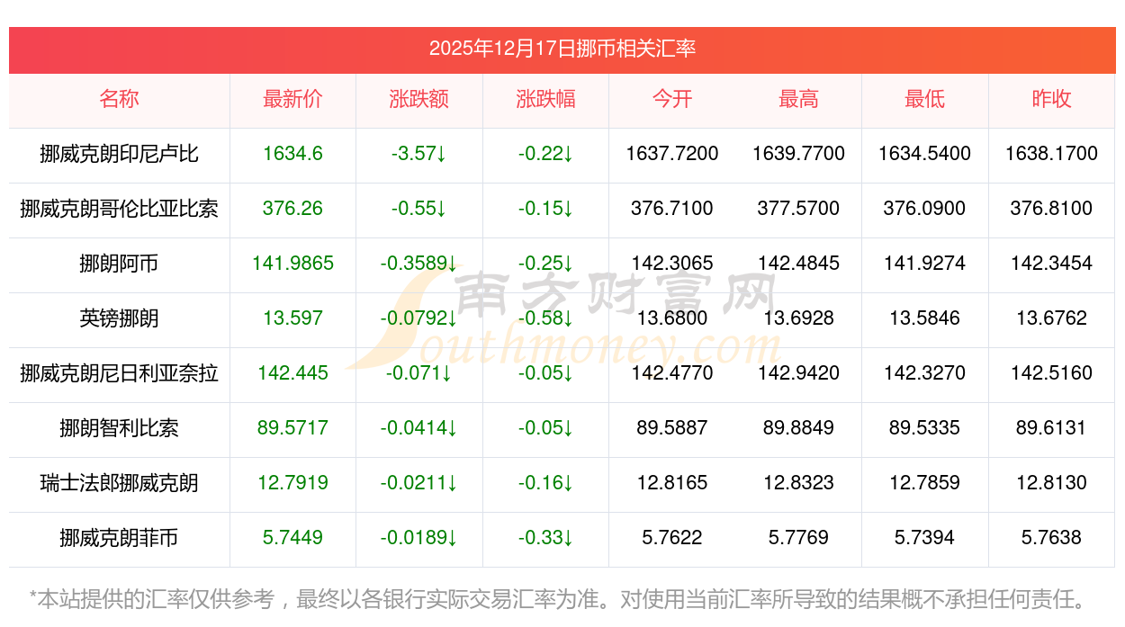 2025年12月17日挪幣相關(guān)匯率查詢(xún)