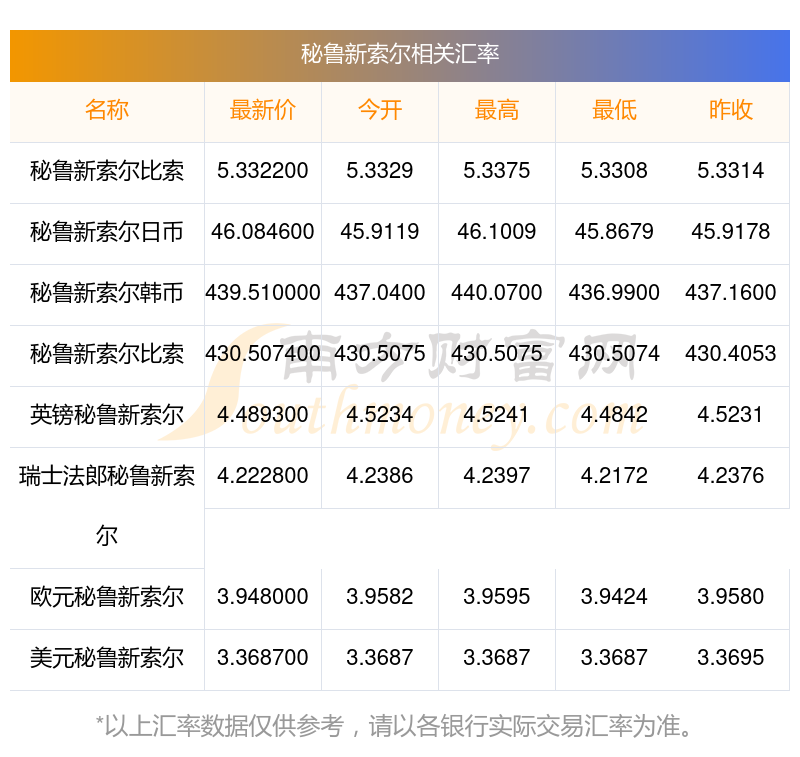 南方財(cái)富網(wǎng)為您提供秘魯新索爾換成雷亞爾匯率最新價(jià)格詳情。