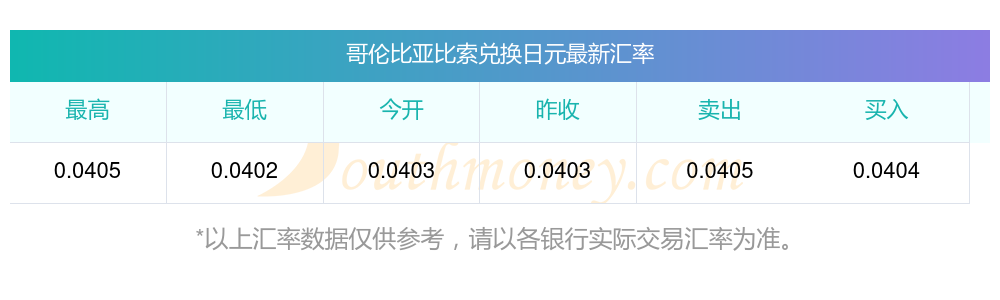 哥倫比亞比索對日元匯率今日?12-17