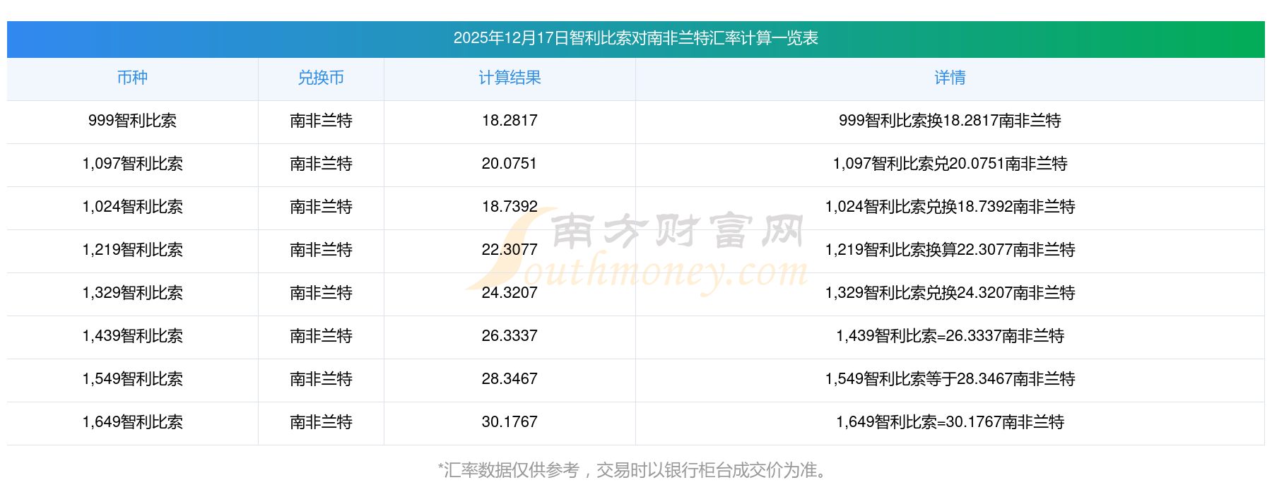 南方財(cái)富網(wǎng)為您提供智利比索對(duì)南非蘭特匯率最新價(jià)格詳情。