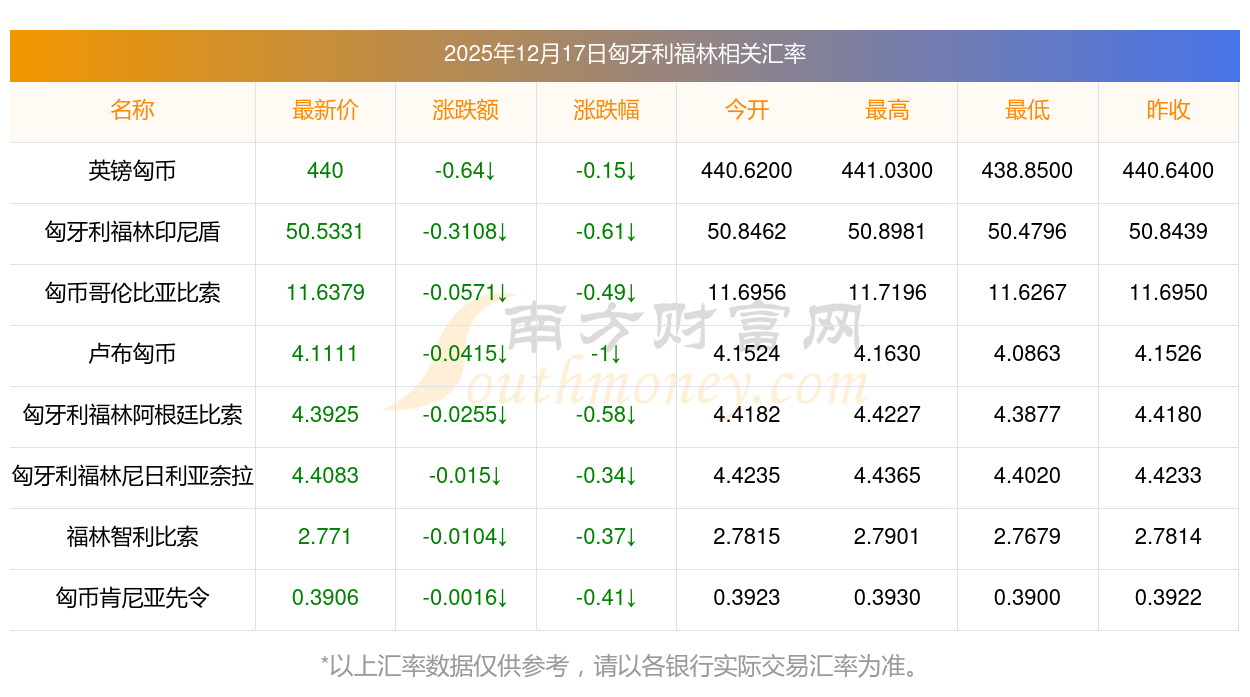 2025年12月17日匈牙利福林兌換新加坡幣匯率是:0.00392