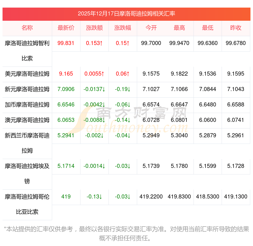 2025年12月17日摩洛哥迪拉姆相關(guān)匯率查詢