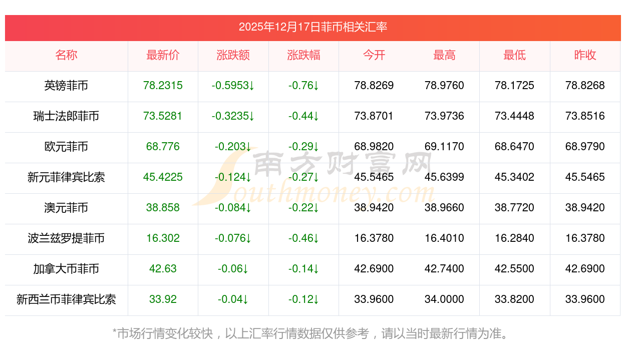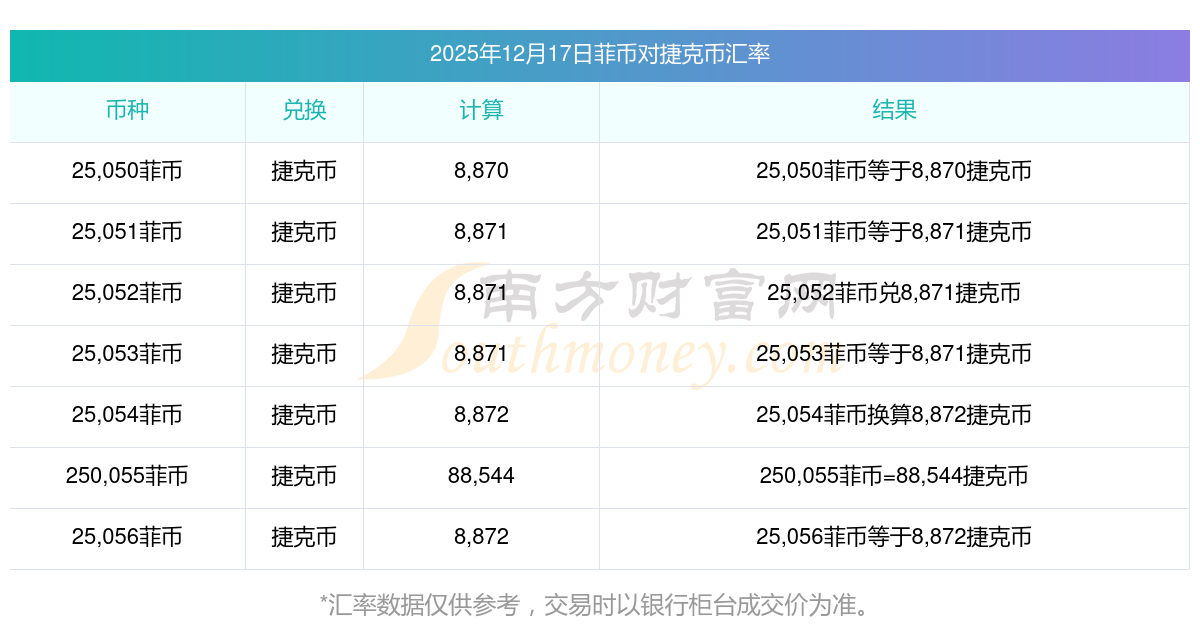今天的匯率多少_菲幣轉換捷克幣計算多少?2025-12-17