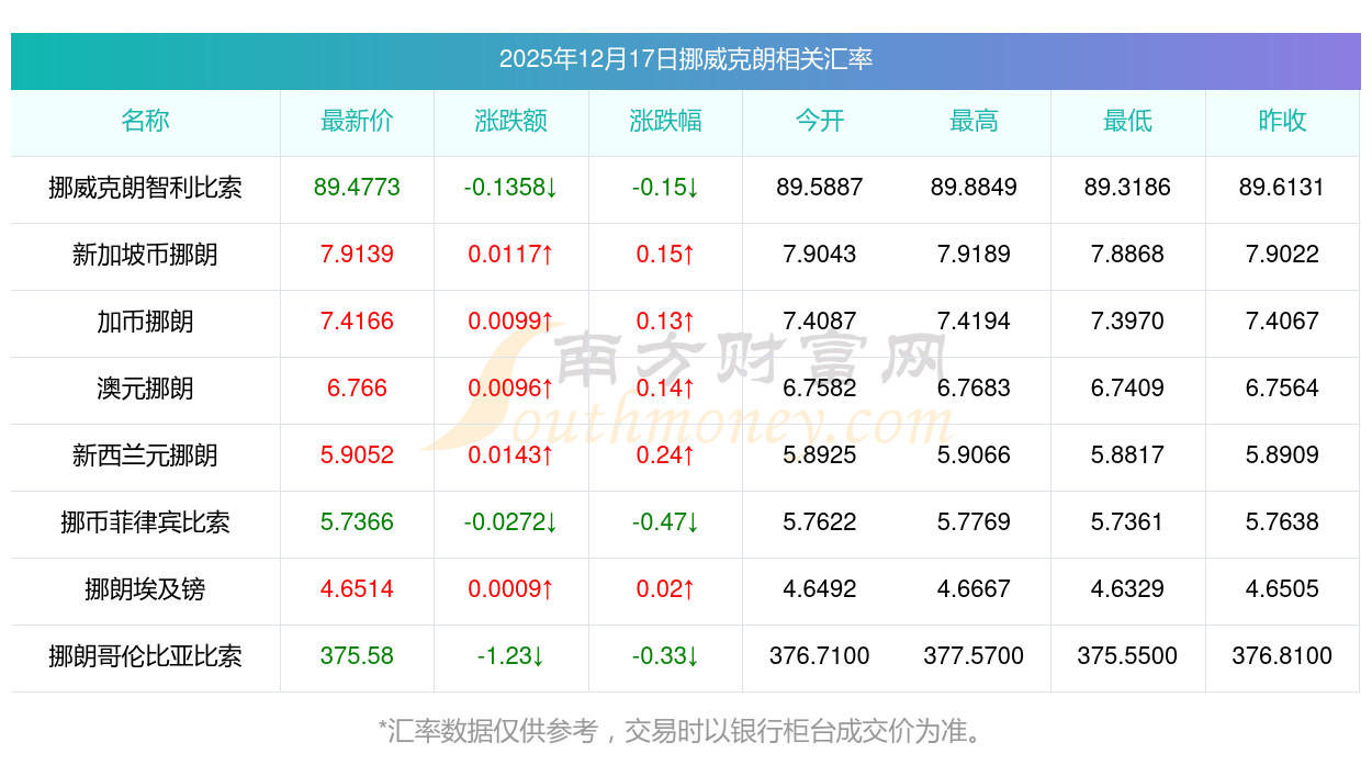 2025年12月17日挪威克朗相關(guān)匯率查詢