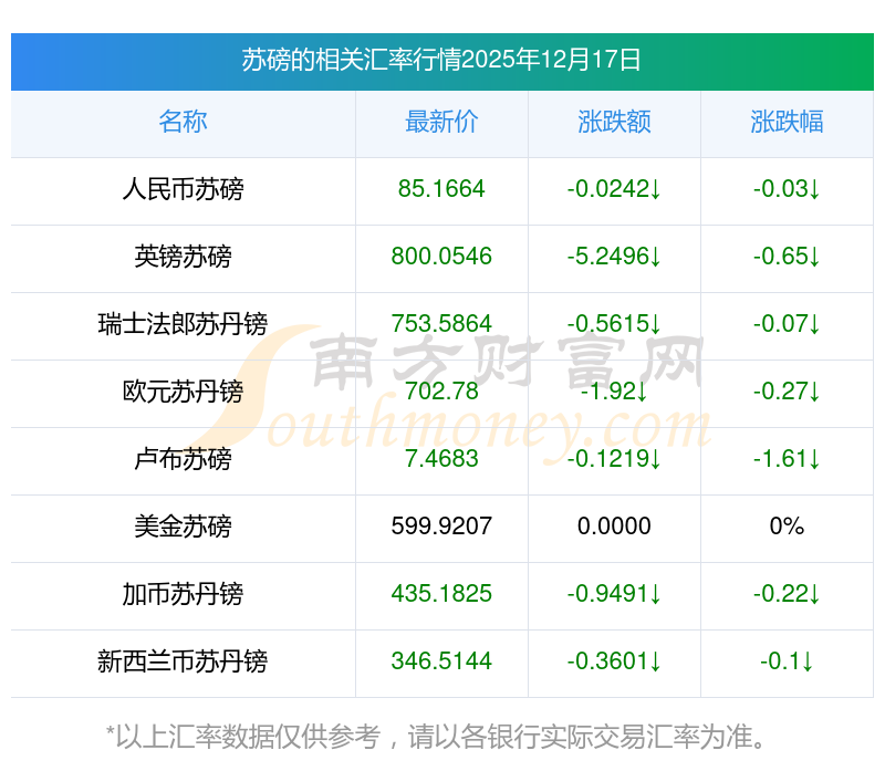 南方財富網為您提供蘇磅對尼日利亞奈拉匯率最新價格詳情。