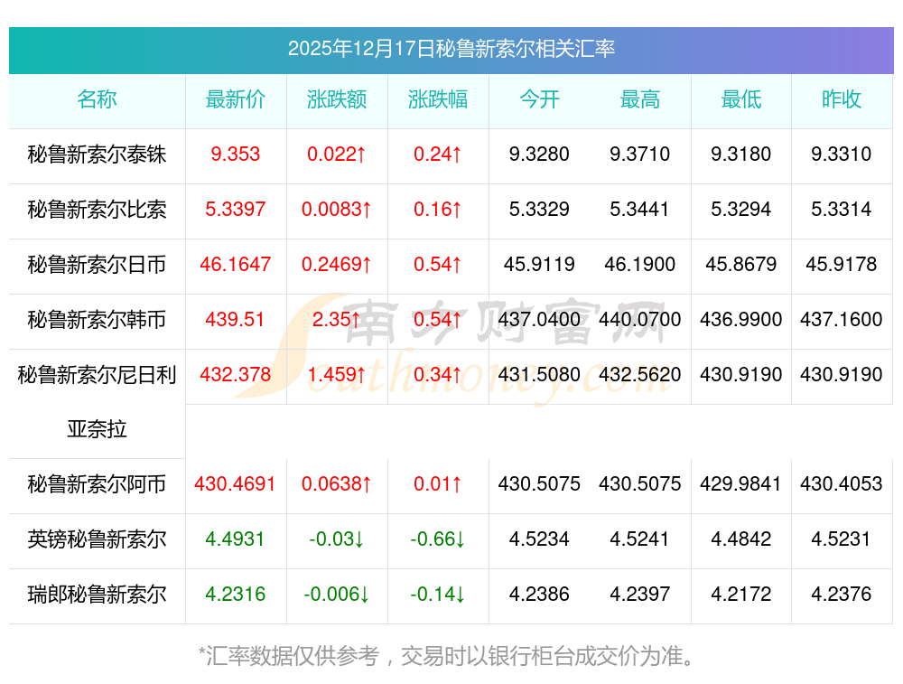 2025年12月17日秘魯新索爾相關(guān)匯率查詢