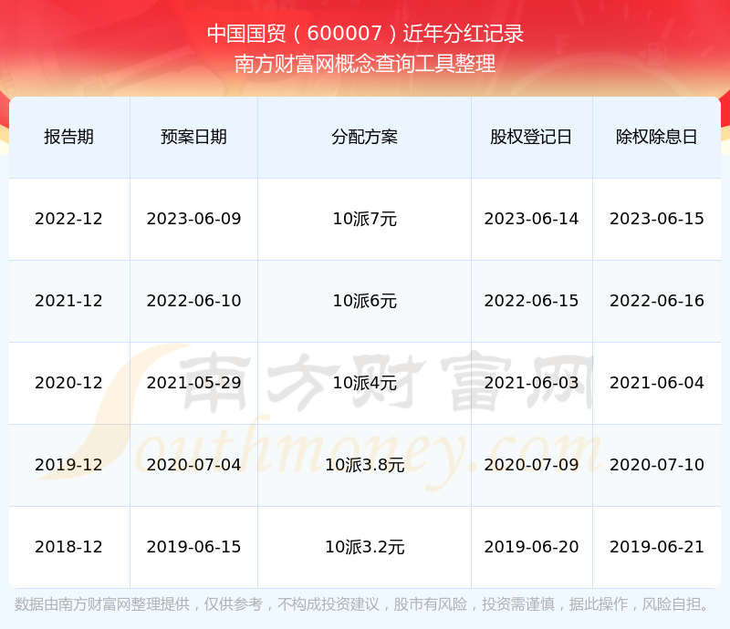 中國國貿(mào)最新一次公布的分紅方案:10派7元。