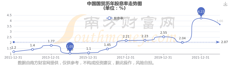 中國國貿(mào)歷年股息率走勢如下圖:
