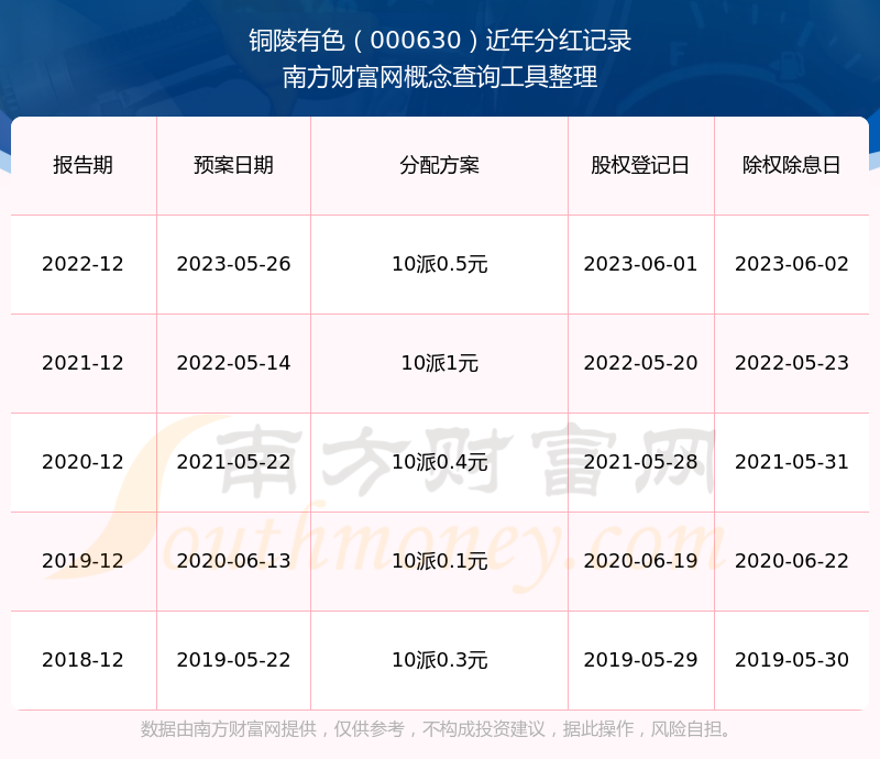 銅陵有色最新一次公布的分紅方案為10派0.5元。本次權(quán)益分派股權(quán)登記日為2023年6月1日,除權(quán)除息日為2023年6月2日,派息日為2023年6月2日。