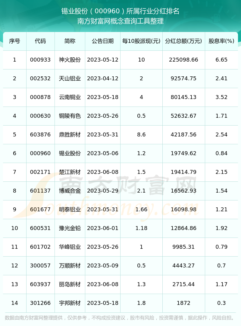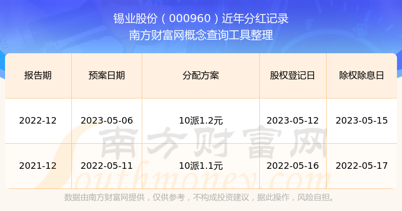 二、錫業(yè)股份000960行業(yè)分紅排名