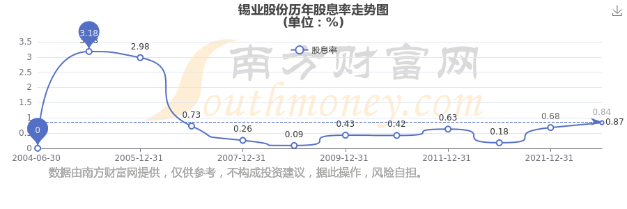 近年錫業(yè)股份年度股息率走勢如下圖:
